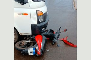 Mulher fica ferida em colisão de motocicleta que pilotava e um utilitário em Chapadão do Sul