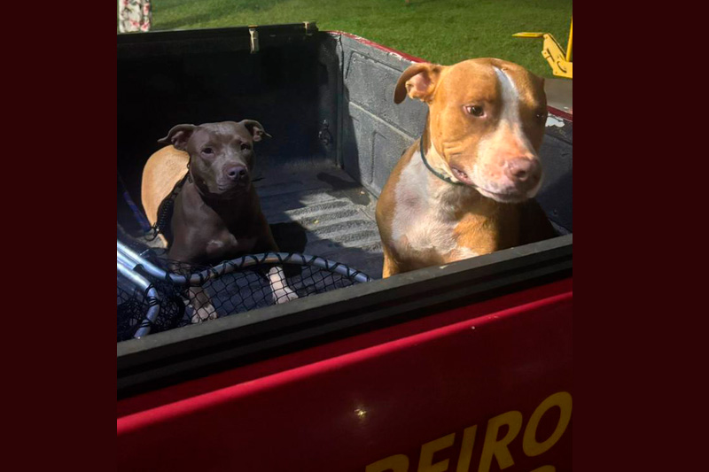 Os dois cães estão no Quartel do Corpo de Bombeiros, caso os proprietários não entrarem em contato com os militares, os animais serão conduzidos para o Canil Municipal.