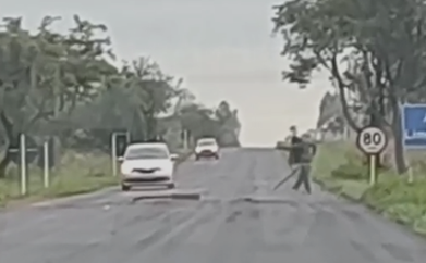 Um homem foi flagrado neste sábado dia 24, caminhando completamente nu às margens da Rodovia