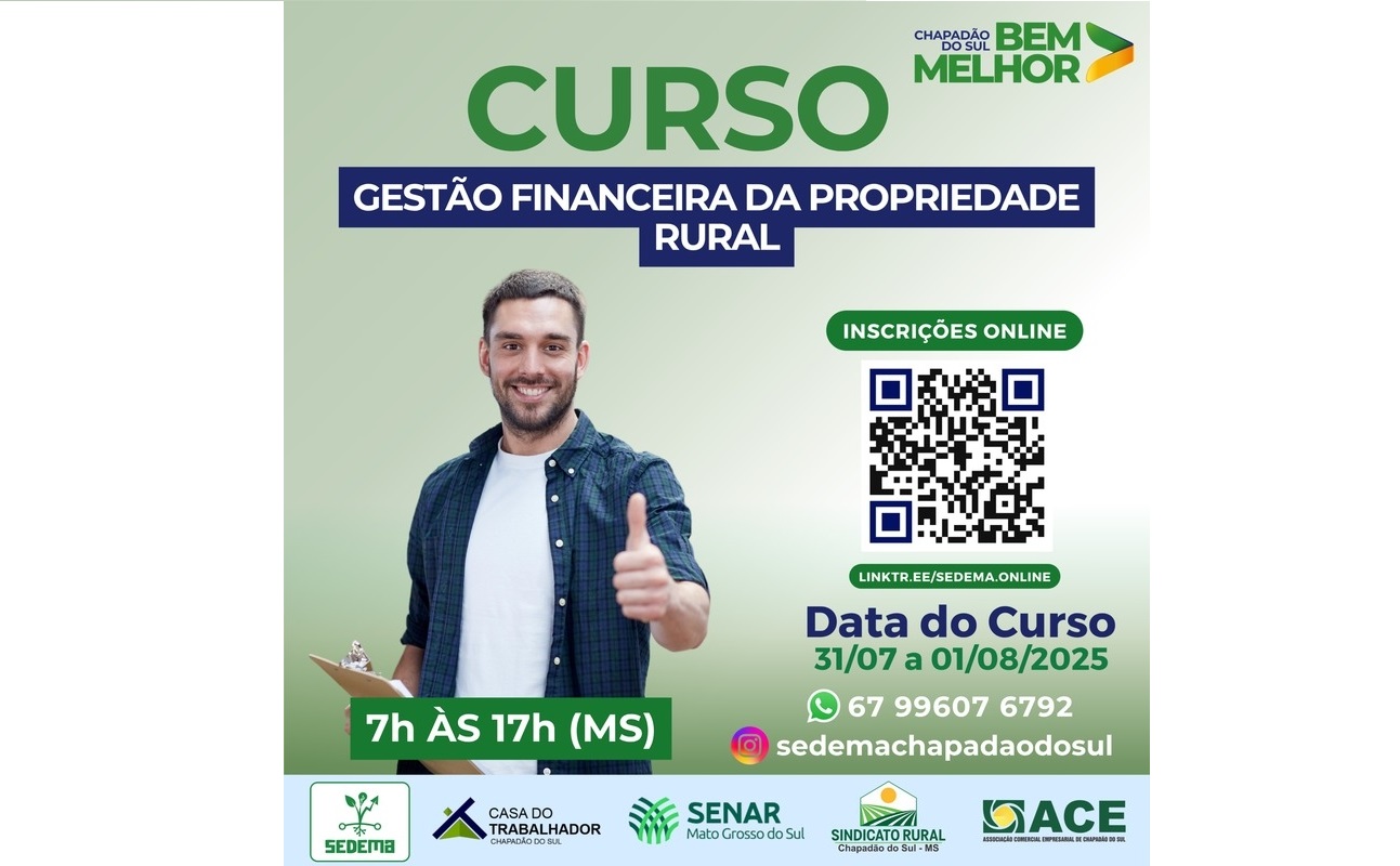 Vagas abertas: Curso de Gestão financeira da propriedade rural