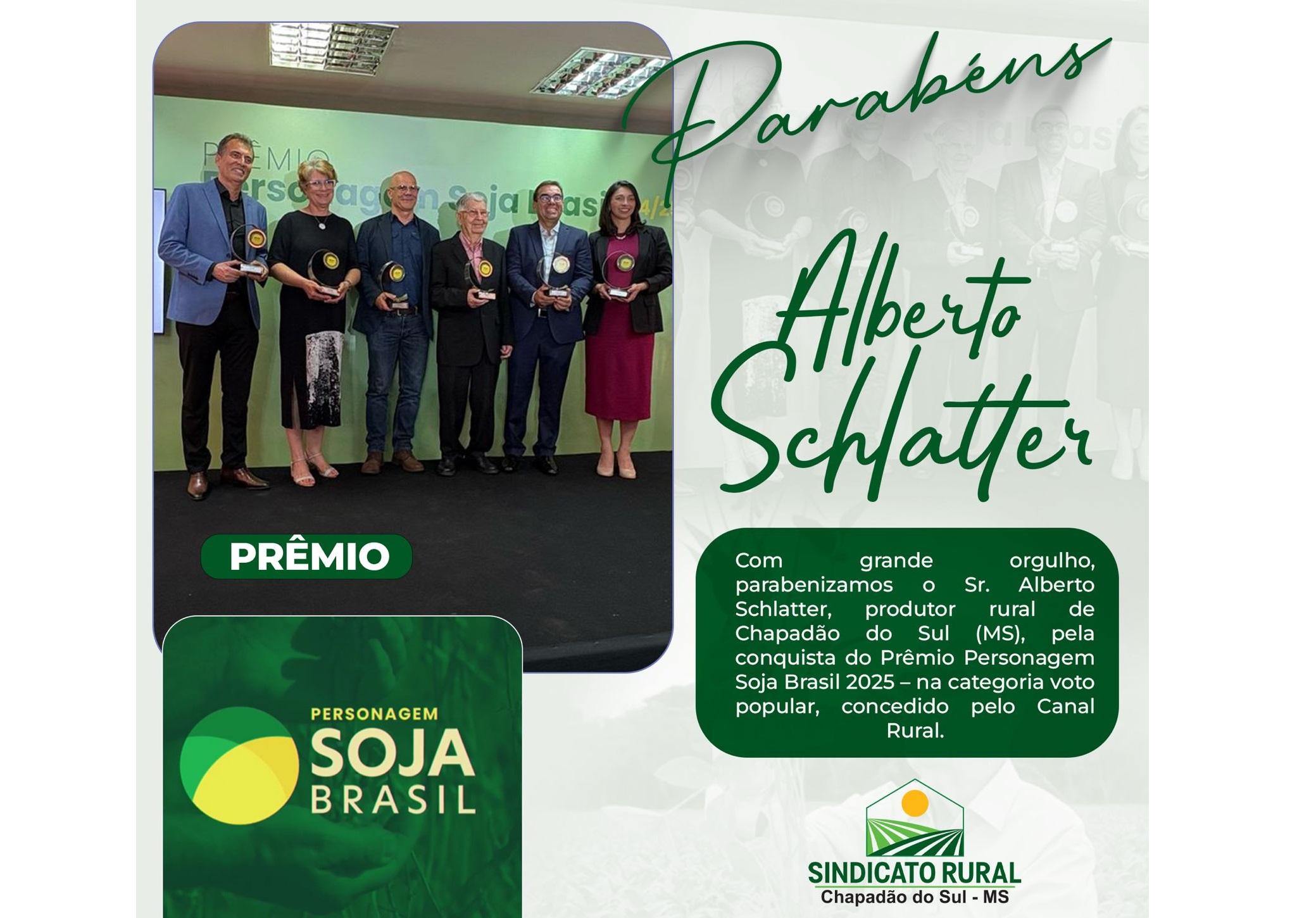 Alberto Schlatter, conquista do Prêmio Personagem Soja Brasil 2025