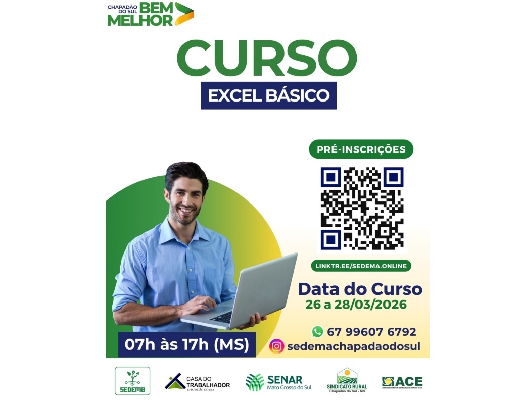 Aprenda Excel Básico: Executivo Municipal abre vagas para curso gratuito em Chapadão do Sul