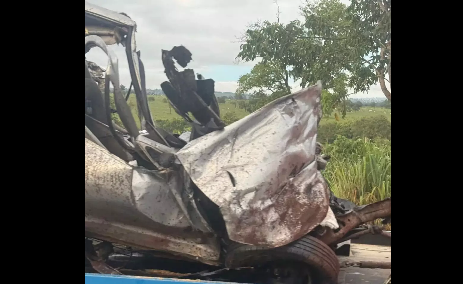 Motorista morre ao ter carro esmagado por carreta em rodovia de Paranaíba